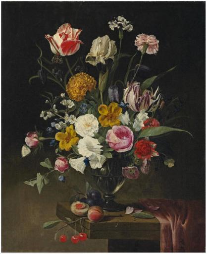 | Keywords: Jan Philip van Thielen - Roses, tulips, carnations and an iris in a glass vase on a draped stone ledge.jpg  Artwork Creator Jan Philips van Thielen title Roses tulips carnations and an iris in a glass vase on a draped stone ledge 17th century http //www christies com/LotFinder/lot_details aspx intObjectID 5022060 oil canvas cm 73 59 Sold at Christie's on 7 December 2007 in London lot 128 The fruit on the ledge may have been executed by a different hand within the 17th century PD-old-100 indistinctly signed 'I P ' lower centre on the ledge Other versions Jan Philip van Thielen Bouquets in art 17th-century oil on canvas paintings 17th-century still life paintings of flowers in glass vases |