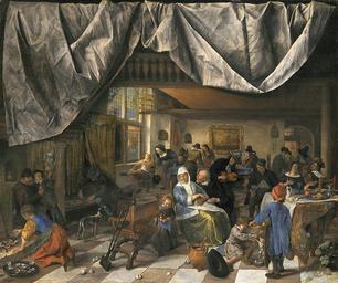 | Keywords: Jan Steen 012.jpg Artwork Q17275843 Creator Jan Steen ~ 1665 Oil on canvas cm 68 2 82 Institution Mauritshuis 6527 Het leven van de mens 1665-1667 20186224 Das Wirtshaus Jan Steens 1665/1667 http //www wga hu/html/s/steen/page2/life_man html The Life of Man 1665 object history ProvenanceEvent Willem V van Oranje-Nassau 1748-1806 The Hague ProvenanceEvent Mauritshuis The Hague exhibition history Jan Steen 1958-1959 54 credit line place of creation Haarlem JSteen signature center right ~ Jan Steen - The Life of Man - WGA21748 jpg Version from www wga hu www geheugenvannederland nl http //www geheugenvannederland nl Home http //www geheugenvannederland nl/en/items/MAU01 0170 Info http //resources21 kb nl/gvn/MAU01/MAU01_0170_W JPG Pic accession number 170 PD-old-100 Genre paintings by Jan Steen 1665 Life Of Man Paintings by Jan Steen in the Mauritshuis 1665 Life Of Man 1660s paintings in the Netherlands Baroque paintings in the Netherlands People with clocks in art People in rooms in art 1660s oil on canvas paintings 17th-century way of life in painting |