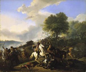 | Keywords: Jan van Huchtenburg 001.jpg Artwork Q17275772 Creator Jan van Huchtenburg LangSwitch Cavalry engagement Rencontre van de cavalerie Mauritshuis inv 68 ~ 1670-1690 Oil on canvas cm 53 2 62 5 Institution Mauritshuis accession number 69 object history by 1766 Pieter de la Court van der Voort Leiden ProvenanceEvent 1766 acquisition Willem V van Oranje-Nassau 1748-1806 The Hague credit line HB monogram bottom right ~ 24325 Aanval op een konvooi 1662-1733 Size cm 53 2 62 5 www geheugenvannederland nl http //www geheugenvannederland nl/ /en/homepage Home http //www geheugenvannederland nl/ /en/items/MAU01 0069 Info http //resources21 kb nl/gvn/MAU01/MAU01_0069_W JPG Pic PD-old-100 Jan van Huchtenburg 1670 Dutch Golden Age paintings in the Mauritshuis Huchtenburg Jan 17th-century cavalry 17th-century warfare 17th-century oil on canvas paintings in the Netherlands 17th-century landscape paintings Collection Catharina Backer |