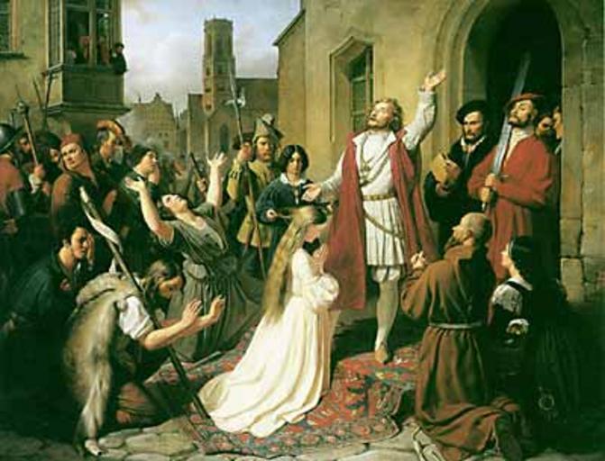 | Keywords: Jan van Leiden tauft ein Mädchen.jpg artwork de Gemälde Jan van Leiden tauft ein Mädchen oder Die Wiedertäufer in Münster' aus dem Jahr 1840 http //webgerman com/Notgeld/Directory/M/m htm Creator Johann Karl Ulrich Bähr 1840 oil canvas cm 146 188 5 788 LM Institution LWL-Landesmuseum für Kunst und Kulturgeschichte PD-old-100 DEFAULTSORT Carl Johann Baehr - Jan van Leiden tauft ein Mädchen Johann Karl Ulrich Bähr LWL-Landesmuseum für Kunst und Kulturgeschichte Jan van Leiden Täuferreich von Münster Paintings from Germany |
