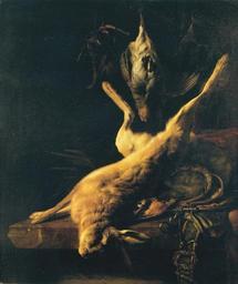 | Keywords: Jan Weenix 001.jpg Artwork Creator Jan Weenix Oil on canvas cm 103 5 88 Institution unknown vente publique à Paris le 13 décembre 1991 source other versions PD-old-100 Jan Weenix Paintings not categorised by year Dead hares in art Paintings lacking painting technique information Partridges in art Still-life paintings of dead birds Still life paintings of dead Leporidae Upside down |