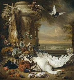 | Keywords: Jan Weenix - Een aap en een hond bij dood wild.jpg Artwork Q17320949 creator Jan Weenix LangSwitch A monkey and a dog beside dead game and fruit with the estate of Rijxdorp near Wassenaar in the background <ref name RMA />https //www rijksmuseum nl/collectie/SK-A-462 Rijksmuseum Amsterdam - National Museum for Art and History </ref> Een aap en een hond bij dood wild en vruchten met op de achtergrond het buitenverblijf Rijxdorp bij Wassenaar <ref name RMA >https //www rijksmuseum nl/collectie/SK-A-462 Rijksmuseum Amsterdam - Nationaal Museum voor Kunst en Geschiedenis </ref> 1714 oil canvas cm 172 160 Institution Rijksmuseum Amsterdam accession number SK-A-462 object history credit line Provenance unknown www rijksmuseum nl http //www rijksmuseum nl/ lang en Home https //www rijksmuseum nl/collectie/SK-A-462 Info https //www rijksmuseum nl/assetimage2 jsp id SK-A-462 Pic PD-old-100 LangSwitch References Noten <references /> DEFAULTSORT Weenix Een aap en een hond bij dood wild en vruchten met op de achtergrond het buitenverblijf Rijxdorp bij Wassenaar ImageNote 1 261 111 98 22 894 960 2 LangSwitch Signed and dated Signé et daté Gesigneerd en gedateerd J Weenix f 1714 ImageNoteEnd 1 1714 paintings in the Netherlands 1710s still life paintings 18th-century still life paintings in the Netherlands 18th-century still life paintings of dead game Dead hares in art Oil paintings of birds Oil paintings of animals Jan Weenix 1714 Paintings by Jan Weenix in the Rijksmuseum Amsterdam Weenix Jan Cuisine of the Netherlands in art Garden vases in art Paintings with years of production artist Paintings with signatures upper left |