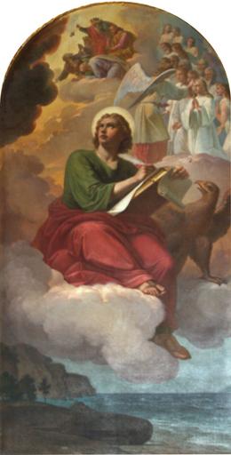 Keywords: Janez Wolf - Sv. Janez Evangelist.jpg Artwork Creator Janez Wolf 1873 technique oil canvas cm 250 125 St Stephen's Parish Church Ribnica https //prezi com/gd-yfn-05joo/oljne-slike-iz-obdobja-od-1800-do-1914-v-cerkvah-ribniske-zu PD-old-100 1873 paintings in Slovenia Paintings by Janez Wolf Paintings of Saint John the Evangelist in Slovenia 19th-century oil on canvas paintings in Slovenia 19th-century religious paintings in Slovenia Paintings in St Stephen's Parish Church Ribnica