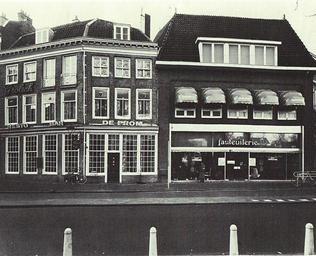 | Keywords: hemingway de prom deprom utrecht janskerkhof fauteullerie de eethoek deeethoek riant grolsch architecture outdoor building De Fauteullerie is de opvolger van de in 1978 opgeheven woninginrichtingszaak Riant. Die had er al sinds 1960 gezeten. Tegenwoordig is het het uitzendbureau Trend. De Prom heeft al bijna 200 jaar iets met eten gehad (al was het van 1907 tot 1915 het woonhuis van P.J.M. Verlinden). In 1834 zat hier de bankbetbakkerszaak van Johan Dönts. In 1918 werd het gekocht door ene Cortenbach die er in 1926 de lunchroom "Janskerk" in begon. Vanaf 1937 was het een restaurant. In de jaren 80 (deze foto dus) zat hier bar-restaurant De Prom. Daarvoor was het de bekende Snackbar De Eethoek. Tegenwoordig zit hier Cafe Restaurant Hemingway. De Fauteullerie is de opvolger van de in 1978 opgeheven woninginrichtingszaak Riant. Die had er al sinds 1960 gezeten. Tegenwoordig is het het uitzendbureau Trend. De Prom heeft al bijna 200 jaar iets met eten gehad (al was het van 1907 tot 1915 het woonhuis van P.J.M. Verlinden). In 1834 zat hier de bankbetbakkerszaak van Johan Dönts. In 1918 werd het gekocht door ene Cortenbach die er in 1926 de lunchroom "Janskerk" in begon. Vanaf 1937 was het een restaurant. In de jaren 80 (deze foto dus) zat hier bar-restaurant De Prom. Daarvoor was het de bekende Snackbar De Eethoek. Tegenwoordig zit hier Cafe Restaurant Hemingway. |