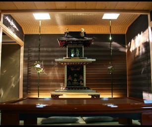 Keywords: japan building ceremonial room wood mahogany lights lighting decor reflections interior furniture
