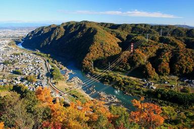 Keywords: japan fall autumn seasons foliage colors colorful landscape mountains valley ravine river forest trees woods boats ships sky clouds beautiful