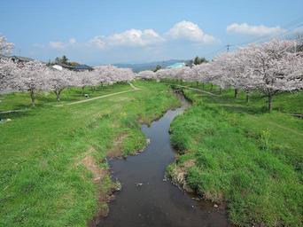 Keywords: japan kumamoto cherry river green park cloud