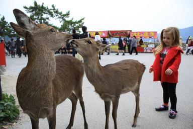 Keywords: japan nature outside winter snow child people deer animals tree sky festival cute
