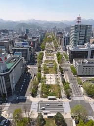 Keywords: japan sapporo urban architecture buildings city sky landmark skyscraper trees odori park street
