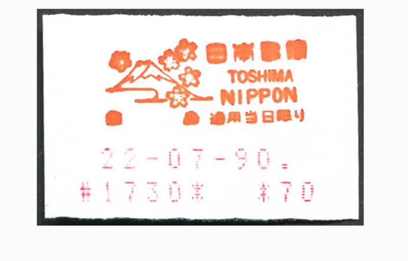 Keywords: Japan stamp type PV4.jpg en Meter stamp catalog image Japan type PV4 Richard Stambaugh Richard Stambaugh 2011-10-24 Meter stamps of Japan