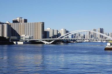 Keywords: japan tokyo bridge building houses city river architecture urban channel tourism cities capital landscape sunny day urban landscape construction