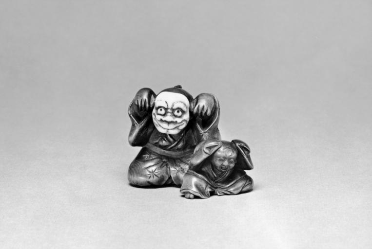 | Keywords: Japanese - Child Frightened by a Man with a No Mask - Walters 61242.jpg century 18 19 Edo; Meiji wood ivory cm 3 1 accession number 61 242 39399 Henry Walters Baltimore date and mode of acquisition unknown Walters Art Museum Henry Walters Acquired by Henry Walters none Netsuke Miniature Sculpture of Japan place of origin Japan Walters Art Museum license Netsuke Miniature Sculpture of Japan Art of Japan in the Walters Art Museum Netsuke Nō masks | ||||