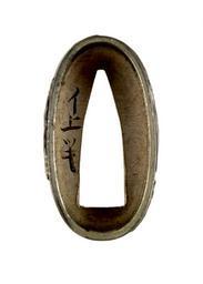 | Keywords: Japanese - Fuchi with Bamboo and Plums - Walters 5112433A - Mark A.jpg The fuchi is decorated with bamboo on the front and plum blossoms on the reverse It may have originally been paired with a kashira depicting pine trees because those three plants are known as the three friends of winter This is part of a mounted set early-mid 19th century Edo shibuichi gold cm 3 9 2 1 1 2 accession number 51 1243 3A 79624 Henry Walters Baltimore date and mode of acquistion unknown Walters Art Museum Henry Walters Acquired by Henry Walters Mark Assembly mark in ink inside fuchi i jyô tsu ki place of origin Japan Walters Art Museum license Fuchi in the Walters Art Museum White background Media contributed by the Walters Art Museum needs category review |