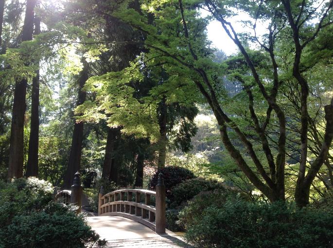 Keywords: japanese garden bridge portland wooden green