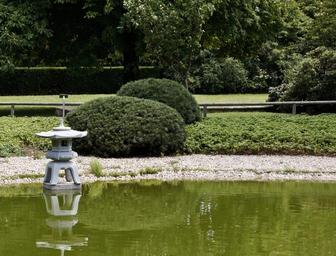 Keywords: japanese garden lake water background image park green silent idyll