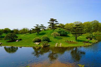 Keywords: japanese garden trees lake landscape happiness peaceful botanic garden tranquil green nature summer meditation serene garden shrubs water reflection traditional