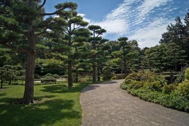 Keywords: japanese garden trees rest away background image park green blue