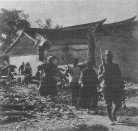 | Keywords: Japanese guard in Baoshan01.JPG en In the morning a Japanese soldier escorting Chinese farmers from their home to their fields in Baoshan County Jiangsu Province today Baoshan District Shanghai Taken on October 14 1937 ja 日 兵に護られて野良仕事に出かける中国の農民 江蘇 山 盛家橋部落 昭和12年10 14日 China Incident Photograph Album Volume 2 Shina Jihen Shashin Zenshu Vol 2 published in 1938 by Asahi Shimbun 支那事変写 全集<中>( 日新聞 昭和13年発行) Sweeper tamonten <span class signature-talk >talk</span> 2008-04-27 PD-Japan-oldphoto Japan's assistance in occupied China Complete Pictorial of the China Incident Baoshan District |