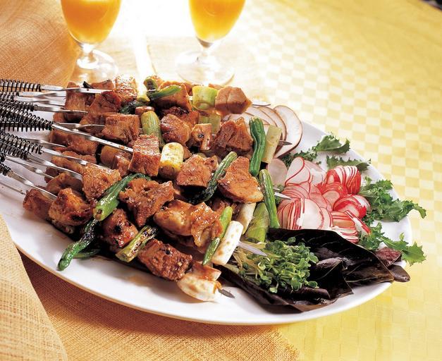 Keywords: skewers satay pork korean bbq onion dish stick meal barbecue platter plate oriental spring yakitori yakitori-ya lime negima kebab indonesian chicken chilli traditional kushiyaki chopsticks thai bacon grilled butabara