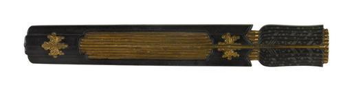 | Keywords: Japanese - Kozuka in the Shape of a Quiver - Walters 51744.jpg This kozuka is designed in the shape of a quiver with arrows A paulownia crest decorates the top and bottom of the quiver century 18 19 shakudo gold silver cm 9 6 accession number 51 744 23940 Henry Walters Baltimore date and mode of acquisition unknown Walters Art Museum Henry Walters Acquired by Henry Walters none place of origin Japan Walters Art Museum license Kozuka in the Walters Art Museum Media contributed by the Walters Art Museum needs category review |