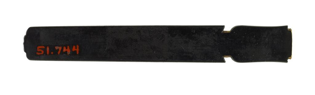 | Keywords: Japanese - Kozuka in the Shape of a Quiver - Walters 51744 - Back.jpg This kozuka is designed in the shape of a quiver with arrows A paulownia crest decorates the top and bottom of the quiver century 18 19 shakudo gold silver cm 9 6 l accession number 51 744 23940 Henry Walters Baltimore date and mode of acquisition unknown Walters Art Museum Henry Walters Acquired by Henry Walters none place of origin Japan Walters Art Museum license Kozuka in the Walters Art Museum Media contributed by the Walters Art Museum needs category review |