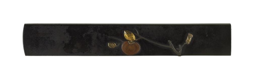 | Keywords: Japanese - Kozuka with Branch and Persimmon - Walters 51761.jpg A persimmon is shown hanging on a branch Persimmons are associated with autumn The reverse of the kozuka has a diagonal gold inset date shakudo copper gold cm 9 accession number 51 761 8244 Henry Walters Baltimore date and mode of acquisition unknown Walters Art Museum Henry Walters Acquired by Henry Walters none Sticker - red trellis 84 place of origin Japan Walters Art Museum license Tosogu Japanese sword fittings in the Walters Art Museum Media contributed by the Walters Art Museum needs category review |