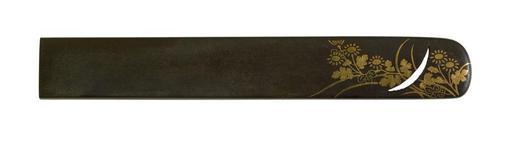 | Keywords: Japanese - Kozuka with Chrysanthemums, Arrowroot and Moon - Walters 51793.jpg At the end of the kozuka a new moon shaped hole is cut through the metal The hole is surrounded by chrysanthemum flowers and arrowroot date shibuichi cm 9 6 accession number 51 793 7769 Henry Walters Baltimore date and mode of acquisition unknown Walters Art Museum Henry Walters Acquired by Henry Walters none place of origin Japan Walters Art Museum license Tosogu Japanese sword fittings in the Walters Art Museum Media contributed by the Walters Art Museum needs category review |