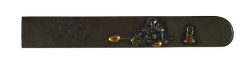| Keywords: Japanese - Kozuka with a Man Holding a Net - Walters 51789.jpg The man here may be the Chinese Zen eccentric Kensu Ch Xianzi Hsien Tzu He holds his net and a bucket sits next to him Despite the Buddhist prohibition on consuming flesh Kensu found enlightenment while fishing for shrimp century 18 shibuichi gold silver copper cm 9 6 accession number 51 789 23240 Henry Walters Baltimore date and mode of acquisition unknown Walters Art Museum Henry Walters Acquired by Henry Walters none place of origin Japan Walters Art Museum license Tosogu Japanese sword fittings in the Walters Art Museum Media contributed by the Walters Art Museum needs category review |
