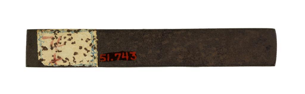 Keywords: Japanese - Kozuka with New Year's Dancing - Walters 51743 - Back.jpg A sacred shimenawa rope with paper decorations crosses the top of the composition Below are two men This scene may depict the men arriving at a shrine or they may be dancing as part of New Year's celebrations century 18 iron cm 9 5 accession number 51 743 10749 Henry Walters Baltimore date and mode of acquisition unknown Walters Art Museum Henry Walters Acquired by Henry Walters none sticker with 19 in Japanese place of origin Japan Walters Art Museum license Kozuka in the Walters Art Museum Media contributed by the Walters Art Museum needs category review |