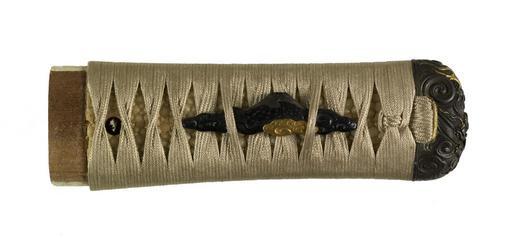 | Keywords: Japanese - Tsuka with Dragons, Clouds, and Mt Fuji - Walters 5112813B - Back.jpg The kashira on the end depicts a dragon amongst clouds with gold highlights One of the menuki is in the shape of a gold dragon flying through shakudo clouds The other depicts Mt Fuji The pairing of a dragon and Mt Fuji is an emblem of success This is part of a mounted set century 18 19 late Edo-Meiji silver ray skin gold shakudo cm 12 2 accession number 51 1281 3B 2350 Henry Walters Baltimore date and mode of acquisition unknown Walters Art Museum Henry Walters Acquired by Henry Walters none place of origin Japan Walters Art Museum license Tsuka in the Walters Art Museum Media contributed by the Walters Art Museum needs category review Media contributed by the Walters Art Museum needs artist review |