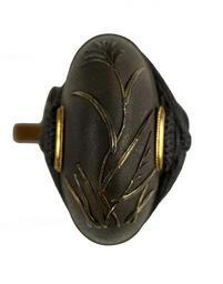 | Keywords: Japanese - Tsuka with Flowers - Walters 5112173B - Detail A.jpg The kashira is decorated with pampas grass which is one of the celebrated autumn flowers The two menuki are in the shape of blossoming plum branches Plum is the first tree to flower in the spring This is part of a mounted set 18th-19th centry Edo silver gold shibuichi ray skin silk cord wood cm 10 9 accession number 51 1217 3B 79604 Henry Walters Baltimore date and mode of acquistion unknown Walters Art Museum Henry Walters Acquired by Henry Walters none place of origin Japan Walters Art Museum license Tsuka in the Walters Art Museum Media contributed by the Walters Art Museum needs category review |