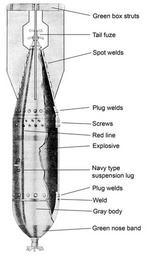 | Keywords: Japanese Type 98 No 25 land bomb.jpg A diagram of a Japanese Navy World War II Type 98 No 25 532 lbs Land bomb Diagram scanned from TM 9-1985-4 Japanese Explosive Ordnance Before March 1953 US Gov Public domain - US gov PD-USGov Japanese WW2 Air-dropped bombs Weapons of the Imperial Japanese Army |