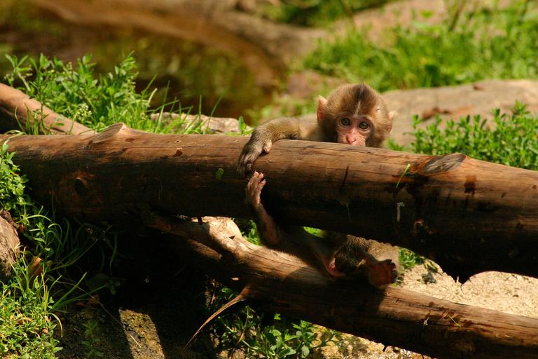 Keywords: japanmakake baby monkey makake monkey baby animal schneeaffe rotgesichtsmakake macaca fuscata log gymnastics climb nature cute