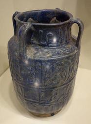 | Keywords: Jar with bands of calligraphic design, Iran, Seljuk period, late 12th or early 13th century, earthenware with molded relief decoration under a blue glaze - Cincinnati Art Museum - DSC04073.JPG en Exhibit in the Cincinnati Art Museum Cincinnati Ohio USA This artwork is in the public domain because the artist died more than 70 years ago Photography was permitted in the museum without restriction 2013-05-14 11 25 23 own Daderot cc-zero Seljuk pottery in the Cincinnati Art Museum Uploaded with UploadWizard |