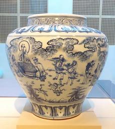| Keywords: Jar with a celebration of longevity by Taoist immortants, China, Jingdezhen, Jiangxi province, Ming dynasty, Jingtai or Tianshun emperor, porcelain with underglaze blue - Asian Art Museum of San Francisco - DSC01375.JPG en Exhibit in the Asian Art Museum of San Francisco San Francisco California USA This artwork is in the public domain because the artist died more than 70 years ago Photography was permitted in the museum without restriction 2013-11-05 20 17 19 own Daderot other versions cc-zero Porcelain jars baluster Baluster-shaped jars porcelain Jingdezhen porcelain in the Asian Art Museum of San Francisco Uploaded with UploadWizard |