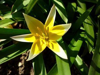 Keywords: jardin des plantes two color tulip sunlight green leaf spring march yellow white flower
