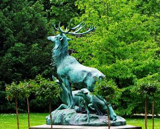 Keywords: jardin du luxembourg france statue sculpture monument artistic trees nature outside deer