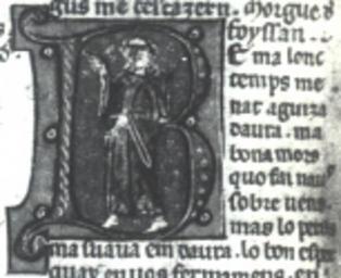 | Keywords: Jaufre de Foixa.jpg A miniature of Jaufre de Foixa in the initial capital B folio 345v from troubadour chansonnier C 14th-century from Occitania now BnF 856 in Paris The song is the monk Jaufre is beginning is Be m'a lonc temps century 14 PD-art-100 Original upload log en wikipedia Jaufre+de+Foixa jpg 2008-04-16 04 43 Srnec 153×125× 24586 bytes <nowiki>A miniature of Jaufre de Foixa in the initial capital B folio 345v from troubadour chansonnier C 14th-century from Occitania now BnF 856 in Paris The song is the monk Jaufre is beginning is Be m'a lonc temps </nowiki> 1300 deaths Franciscans in art Abbots Troubadours |