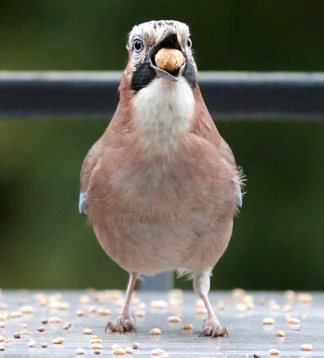 Keywords: jay bird animal feeding hunger young jay peanut bird feeding