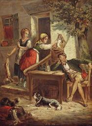 | Keywords: JB Der lustige Tausch für den eingeschlafenen Jäger 1874.jpg Der lustige Tausch für den eingeschlafenen Jäger J B monogram 18 74 date oil on canvas ca 38 x 30 cm http //www dorotheum com Dorotheum 1874 žJB PD-old-70-1923 Images from Dorotheum 1874 paintings Sleeping in art Secrecy in art Pranks Dead hares in art Paintings of hunters Paintings of dogs 19th-century paintings of cats | ||||