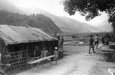 | Keywords: batti commerce community footpath tea shop teashop nepal blackandwhite monochrome outdoor cabin building architecture black and white Date: 1969-1970 Location: Pokhara, Kaski Description: Tea shop in the Pokhara valley at the beginning of the path toward Jomsom. Date: 1969-1970 Location: Pokhara, Kaski Description: Tea shop in the Pokhara valley at the beginning of the path toward Jomsom. |