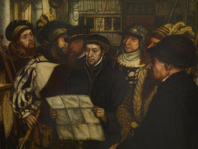 | Keywords: Jean August Hendrik Leys - The Edict-s- of Charles V - Walters 37123 - Detail G.jpg Baron Leys was regarded as Belgium's foremost artist in the mid 19th century About 1851 he adopted a deliberately archaizing style resulting in part from a visit to Germany in 1852 This scene is set in the artist's native Antwerp identifiable because of the famous church spire in the distance Between 1520 and 1550 Charles V emperor of the Holy Roman Empire issued 11 edicts making the practice of Protestantism a crime punishable by death Antwerp served as a major center of learning and finance that had attracted many foreigners especially Jews and Protestants ca 1861 oil on panel cm 138 245 ; Framed cm 182 9 280 7 12 7 accession number 37 123 7985 Comte W de Bourgade date and mode of acquisition unknown Comte de Liedekerke-Beaufort Dinant date and mode of acquisition unknown Charles Deschamps October 24 1883 mode of acquisition unknown William T Walters Baltimore October 1883 by purchase Henry Walters city Baltimore Walters Art Museum Henry Walters Acquired by William T Walters 1883 Label Paper sticker on reverse Exhibition Historique de l'art Belge / Nom de possesseur du tableau Cte W de Bourgade / Subjet de l'oeuvre Publication des edits de Charles Quint / Valeur / Nom de l'auteur Bon Leys Salute to Belgium place of origin Picardy Walters Art Museum license 2D Salute to Belgium The Edicts of Charles V Media contributed by the Walters Art Museum needs category review Paintings in the Walters Art Museum |
