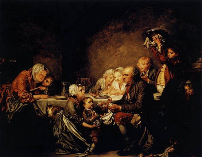 | Keywords: Jean-Baptiste Greuze - Epiphany (Le gâteau des rois) - WGA10663.jpg Artwork 1774 Oil on canvas size cm 71 95 Institution Musée Fabre object history credit line accession number WGA link 10663 http //www wga hu/art/g/greuze/epiphany jpg http //www wga hu/html/g/greuze/epiphany html PD-old-100 painting genre French 1751-1800 WGA form painting WGA type genre WGA School French WGA time period 1751-1800 Epiphany Le gâteau des rois Greuze | ||||