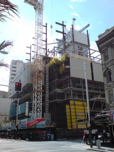 | Keywords: Jean Batten Building Western Facade Scaffold.jpg The Jean Batten Building rising again after demolition of the old building core The building will become a new skyscraper in the Auckland CBD New Zealand with the visible facade rests integrated into its back and sides self-photographed 2008-10 Uploader -36 8460019 174 7661144 Photos taken by Ingolfson Jean Batten Building Construction cranes in New Zealand Tower cranes in New Zealand Construction sites in Auckland Scaffolding in New Zealand 2008 in New Zealand Cores architecture |
