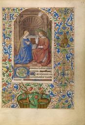 | Keywords: Jean Bourdichon (French - The Annunciation - Google Art Project.jpg Domine labia me aperies et os meum annunciabit laudem tuam Lord open my lips and my mouth will declare your praise declare the words beneath this miniature of the Annunciation This sentence taken from a verse of Psalm 50 opens Matins of the Hours of the Virgin Following the traditional iconography of the Hours of the Virgin the illuminator illustrated each of the eight devotions with an episode from Mary's life The Virgin prays in her private Italianate chapel just as the manuscript's owner may also have done The angel Gabriel interrupts her and announces that she will give birth to Jesus Above Gabriel and the Virgin the Holy Spirit in the guise of a dove flies toward the future mother of God on a stream of golden rays of light This supernatural light shines on the Virgin and angel below creating highlights on their deeply colored gowns The Virgin and angel's voluminous gowns give weight to their bodies contributing to the miniature's three-dimensional quality From Jean Fouquet his predecessor as court painter at Tours Jean Bourdichon learned to use geometry to create monumental figures symmetrical compositions and the credible illusion of three-dimensional space 1457 1521 1457 - 1521 active Tours France early 1480s - 1521 6827178 Jean Bourdichon French French 1457 - 1521 /collection/the-j-paul-getty-museum/artwork/the-annunciation-jean-bourdichon-french-1457-1521-active-tours-france-early-1480s-1521/6827177/ Jean Bourdichon French 1457 - 1521 active Tours France early 1480s - 1521 illuminator /artist/jean-bourdichon/6807389/ 6807389 /collection/the-j-paul-getty-museum/ The J Paul Getty Museum 343005 http //www getty edu/museum 3/12/2012 1 54 51 PM /collection/the-j-paul-getty-museum/artwork/the-annunciation-jean-bourdichon-french-1457-1521-active-tours-france-early-1480s-1521/6827177/ 1480 about 1480 - 1485 Doves Deer Archangel Gabriel Holy Spirit Annunciation Tempera colors gold and ink on parchment 164 6827177 True 1485 3/25/2012 8 40 39 PM lido getty edu-gm-obj2867 http //www getty edu/art/gettyguide/artObjectDetails artobj 2867 http //www getty edu/legal/copyright html Folio 1480 1490 Tours France Creation w116 x h164 cm about 1480 - 1485 False 0 677734375 Part the-annunciation-jean-bourdichon-french-1457-1521-active-tours-france-early-1480s-1521 The Annunciation a 116 Tempera colors gold and ink on parchment Doves Deer Archangel Gabriel Holy Spirit Annunciation http //www getty edu/legal/copyright html special url_id ewG6W77QFkNpdA PD-old-100-1923 1521 Google Art Project works by Jean Bourdichon Miniatures of annunciation Angels with green wings Medieval miniatures of deers MS 6 Getty museum - Katherine Hours Miniatures of lions Psalm 50 |