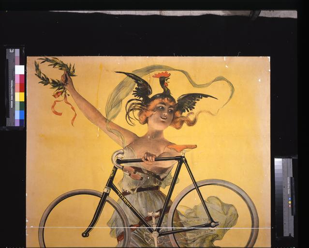 Keywords: Jean de Paleologue, Cycles Clément, Paris; Pneu Dunlop - Library of Congress 1.tif Advertising poster for bicycles showing a woman wearing a Gallic rooster on her head and carrying a laurel wreath in one hand and a bicycle her other hand and wearing winged sandals on her feet Paris Caby Chardin Imprimeurs 1898 1 print poster lithograph color ; 152 x 107 cm place of discovery object history exhibition history credit line Title from item accession number place of creation LOC-image cph 3g14227 PD-100 Jean de Paleologu Bicycle advertisement posters in France Images of Paris from the Library of Congress Advertising posters of Paris Lithographs of Paris Paris in advertising 1898 in Paris 1898 lithographs 1898 advertisements |