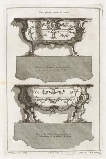 | Keywords: Jean-François Cuvilliés - Livre de diferent dessein de Comodes... - Google Art Project.jpg 1698 1768 Jean-François 5492447 Cuvilliés 1698 - 1768 /collection/cooper-hewitt-national-design-museum/artwork/livre-de-diferent-dessein-de-comodes-jean-francois-cuvillies/5492456/ 29820 Jean-François Cuvilliés /artist/francois-de-cuvillies/6805812/ 6805812 /collection/cooper-hewitt-national-design-museum/ Cooper-Hewitt National Design Museum 3644669 http //www cooperhewitt org/ 3/11/2012 5 39 47 PM /collection/cooper-hewitt-national-design-museum/artwork/livre-de-diferent-dessein-de-comodes-jean-francois-cuvillies/5492456/ 1745 1745 Etching and engraving on off-white laid paper From the Collection of Léon Decloux D 80 and 81 5492456 False 1745 3/25/2012 5 04 48 AM 1921-6-285-37 http //collection cooperhewitt org/view/objects/asitem/id/29820 Purchased for the Museum by the Advisory Council Print 1740 1750 1745 False 0 666015625 Object livre-de-diferent-dessein-de-comodes-jean-francois-cuvillies Livre de diferent dessein de Comodes l Platemark 36 7 x 23 9 cm 14 7/16 x 9 7/16 in Sheet 44 x 28 6 cm 17 5/16 x 11 1/4 in On plate upper right F; upper center in the image Deux diferents desseins de Comodes ; lower center in the image Plan de la Tablette de marbre qui fait/la Couronement de la Comode Sy dessus ; center in the image Plan de la Tablette de marbre qui fait/la Couronement de la Comode Sy dessus ; lower left Inventé par F de Cuvilliés; lower center C P S C M ; lower right gravé par C A de Lespilliez/5 Etching and engraving on off-white laid paper From the Collection of Léon Decloux D 80 and 81 special url_id nAGpvMEjJ8vphg PD-old-100-1923 1768 Collections of the Cooper “Hewitt Smithsonian Design Museum Google Art Project works by Jean-François Cuvilliés Google Art Project works in Cooper-Hewitt Smithsonian Design Museum |