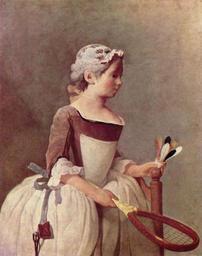 | Keywords: Jean Siméon Chardin - Girl with Racket and Shuttlecock - WGA04765.jpg Artwork Creator Jean Siméon Chardin 1737 Oil on canvas size cm 82 66 Institution Uffizi object history credit line accession number WGA link 4765 http //www wga hu/art/c/chardin/2/04racket jpg http //www wga hu/html/c/chardin/2/04racket html <gallery>Jean-Baptiste Siméon Chardin 002 jpg</gallery> PD-old-100 painting genre French 1701-1750 WGA form painting WGA type genre WGA School French WGA time period 1701-1750 Genre paintings by Jean-Baptiste Siméon Chardin 18th-century paintings in the Uffizi Gallery 1730s paintings in Italy 1737 genre paintings 1737 oil on canvas paintings 1737 paintings from France 18th-century oil paintings of standing women at three-quarter length Badminton in art Rococo paintings of girls |