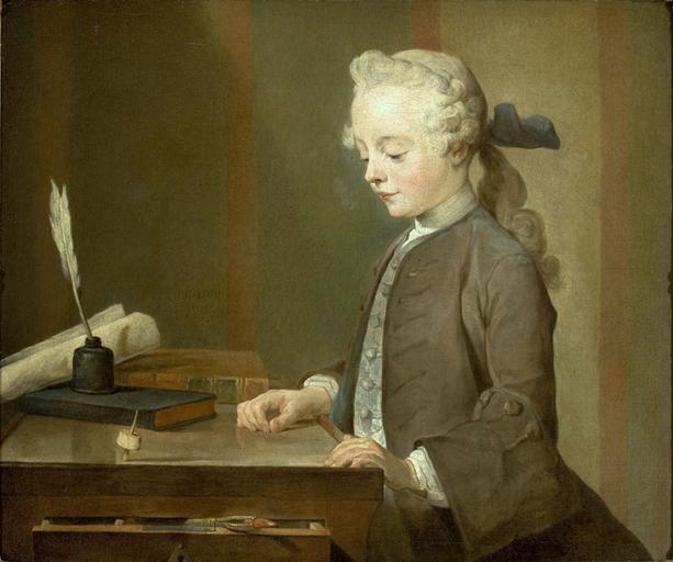 | Keywords: Jean Siméon Chardin - Retrato de Auguste Gabriel Godefroy.jpg Artwork Creator Jean-Baptiste Siméon Chardin Portrait du fils de M Godefroy joaillier appliqué à vior tourner un toton Enfant au toton Portrait of Auguste Gabriel Godefroy Jeune Ecolier qui Joue au Touton 1741 Oil on canvas cm 67 73 Institution Museu de Arte de São Paulo Genre works Signed and dated CHARDIN 1741 Later autograph version of the same composition in the Louvre http //www masp art br/masp2010/acervo_detalheobra php id 208 other versions <gallery>Jean-Baptiste Siméon Chardin 006 jpg 1735 version at the Louvre</gallery> PD-old-100 Auguste Gabriel Godefroy L'enfant au toton Chardin São Paulo French paintings in the Museu de Arte de São Paulo 1741 portrait paintings from France 18th-century paintings in Brazil Copies of portrait paintings Rococo paintings in Brazil |