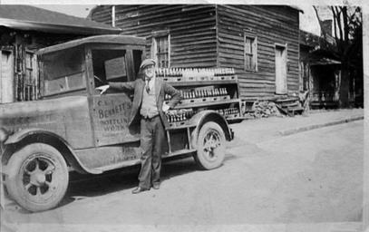 | Keywords: Jebennet1.jpg C E Bennett Bottling Works ; Winston - Salem NC 1909 business ; Bennett's Cola 2006-04-10 own assumed Kittykadoodle~commonswiki Vintage trucks Unidentified historical trucks Winston-Salem North Carolina Black and white photographs of trucks |